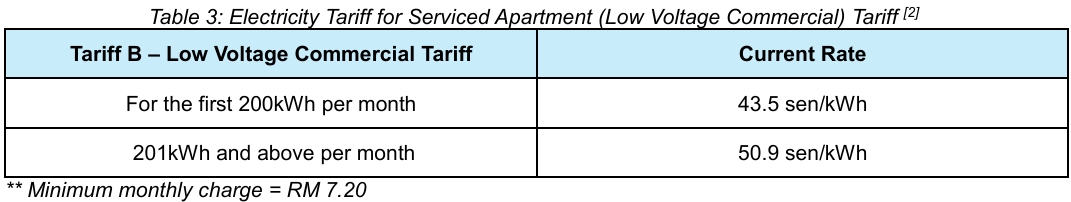 The table showcases the difference of parcel rent charges between condominium (residential) and serviced apartment (commercial):