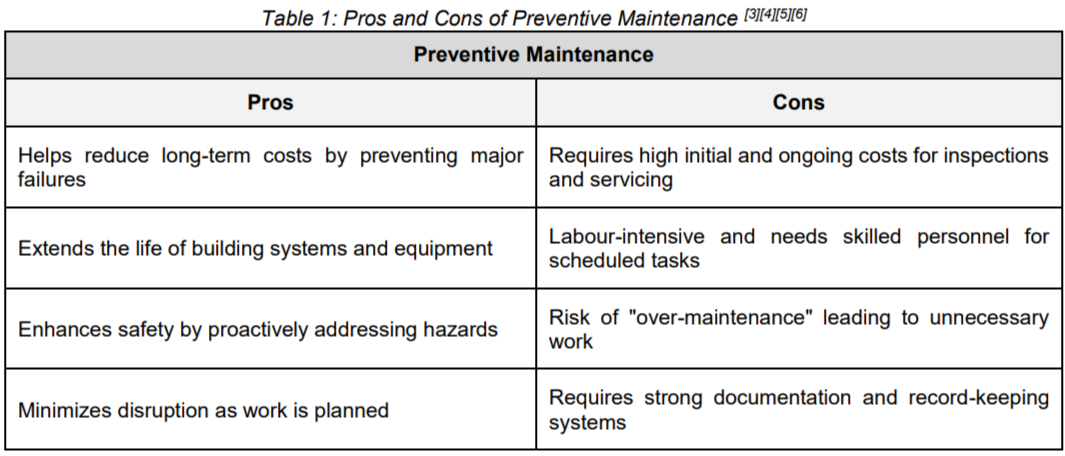 [3] Au-Yong, C.P., Ali, A.S. and Ahmad, F. (2014). Preventive maintenance characteristics towards optimal maintenance performance: a case study of office buildings. World J Eng Technol. 2014;2:1–9. Retrieved on 18th March 2023 from https://www.scirp.org/pdf/WJET_2014091810334278.pdf