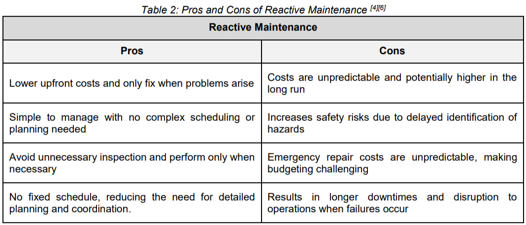 [8] Cryotos (n.d.). When to perform reactive maintenance and when not? Retrieved on 18th March 2023 from https://www.cryotos.com/blog/when-to-perform-reactive-maintenance-and-when-not